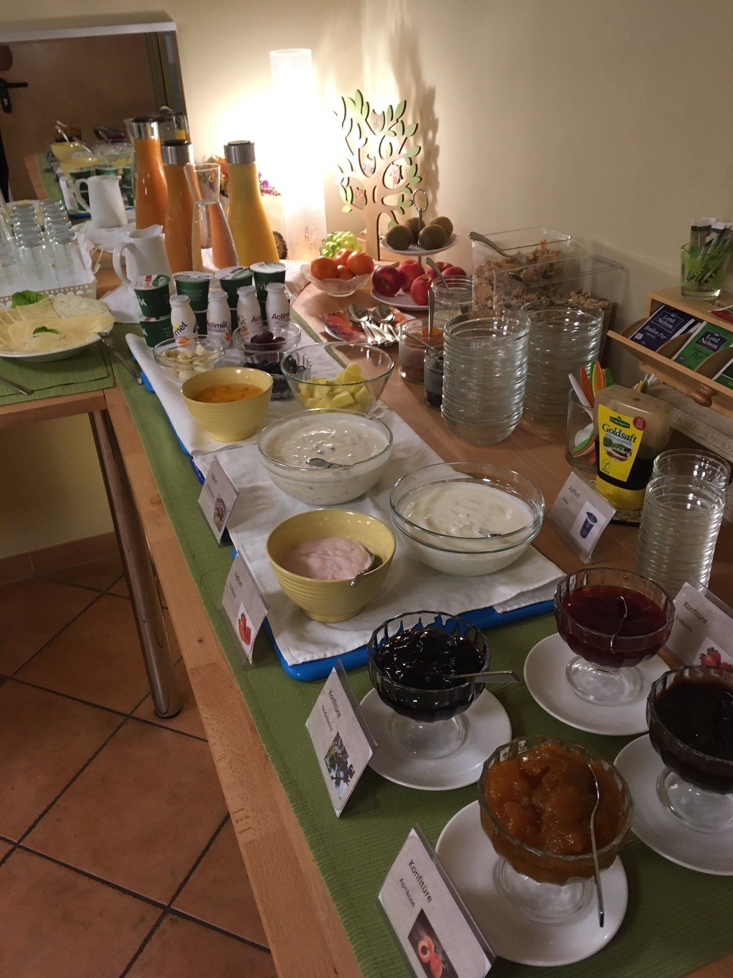 Auf jeder Etage stehen Wasserkocher und kostenloser Kaffee oder Tee zur Selbstbedienung bereit.